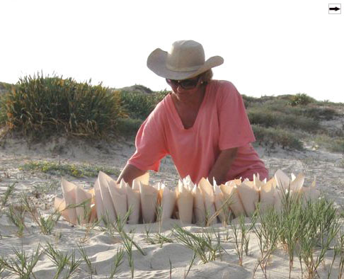 "Art in Nature" project - Between Sea and land - Newspaper pages, Paper Cones